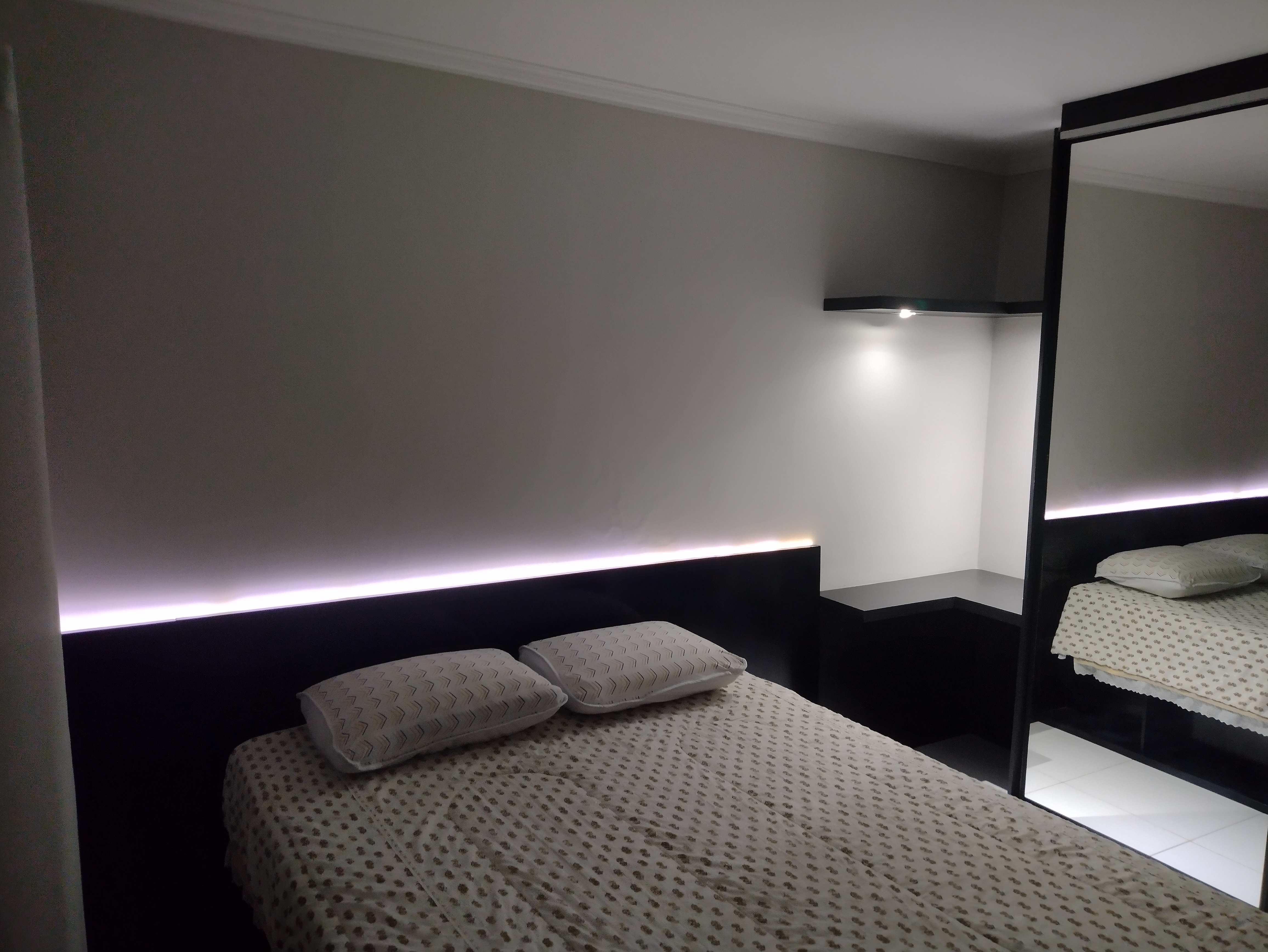 * Sala de estar com ar condicionado, TV, Home Theater, Wi-Fi 5G, acesso aos canais por assinatura e Netflix;